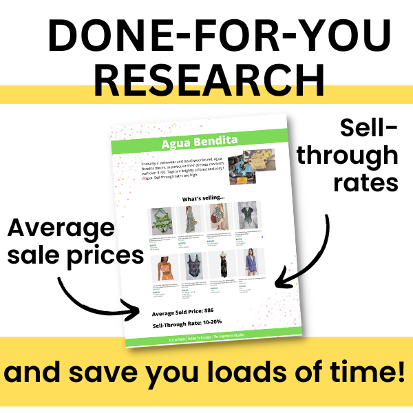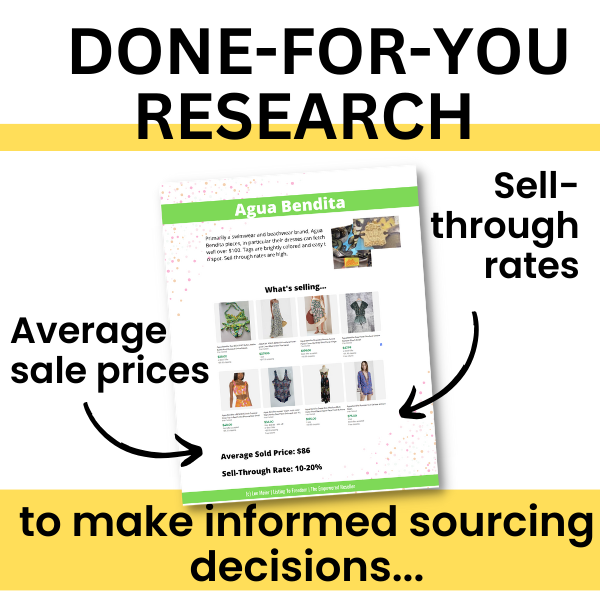 Plus, the research has already been done for you! (You'll find the average sale price and the sell-through rate for each brand featured in the guide).