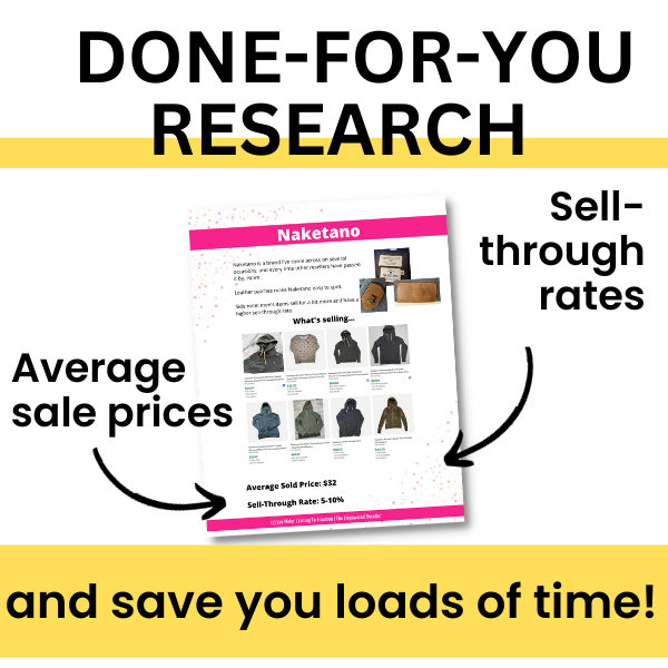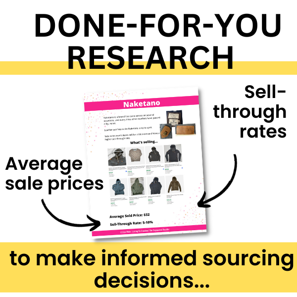 Plus, the research has already been done for you! (You'll find the average sale price and the sell-through rate for each brand featured in the guide).