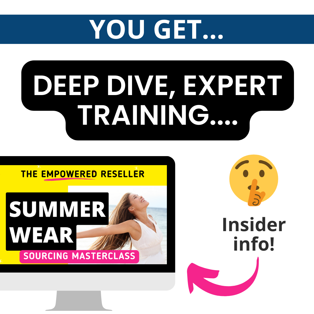 Inside the Summerwear Sourcing Box, you’ll uncover the exact fabrics, styles, activity categories, and phrases that help resellers turn tiny thrift finds into consistent warm-weather sales — using items you can find anywhere.