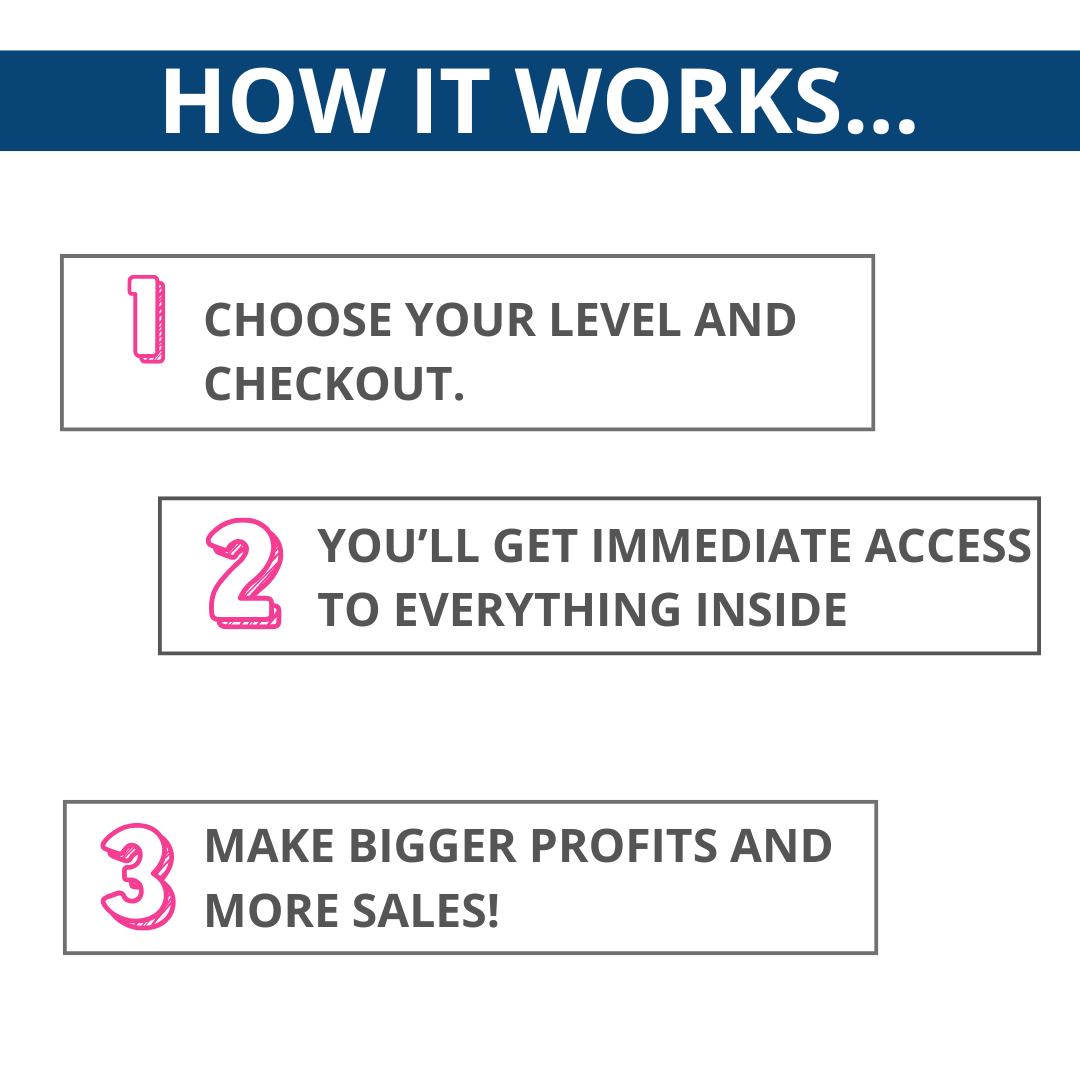 AS SOON AS YOU CHOOSE YOUR LEVEL, YOU'LL RECEIVE ACCESS TO THE ENTIRE MEMBERSHIP PROGRAM PLUS YOUR FREE GIFTS!